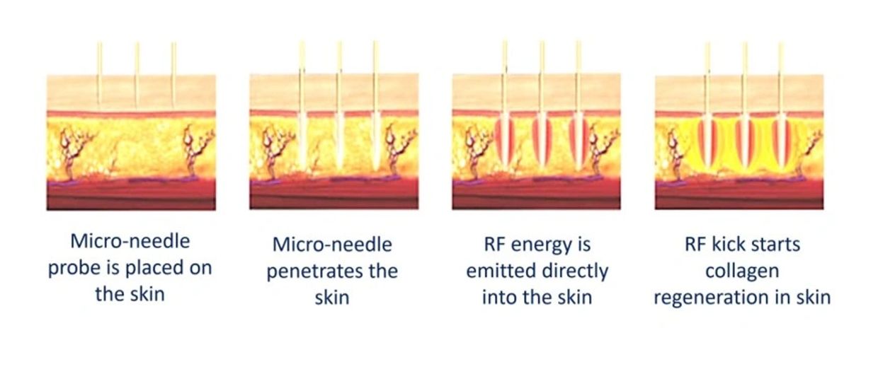 After insertion of the microneedles in your skin, RF energy is emitted from the device in the form of heat, which is delivered right into the dermis. You may feel a sensation of warm itchiness, minimal discomfort due to the numbing effect. A calming balm or mask may be applied after the completion of the treatment.